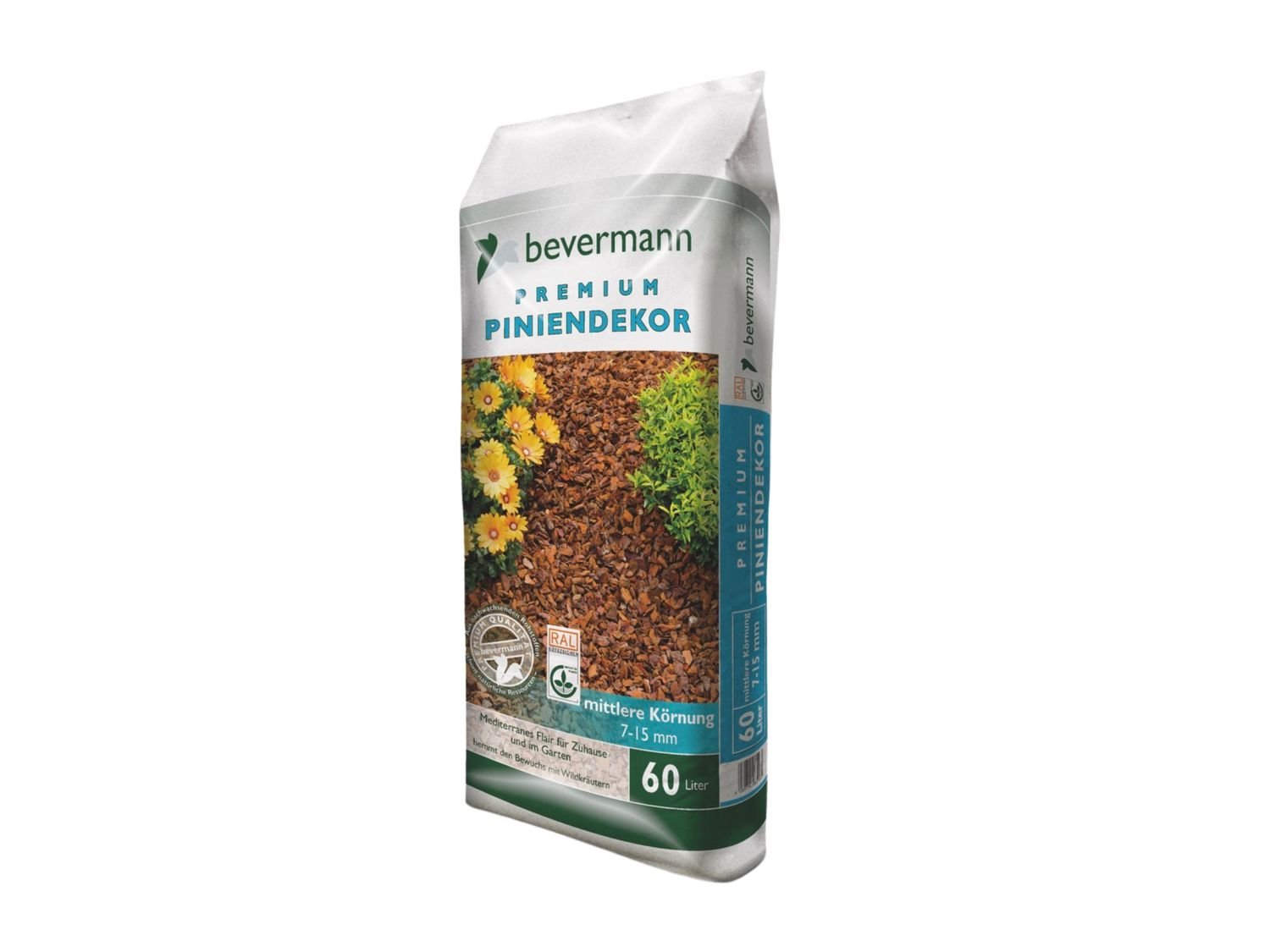 Für dekorative Zwecke ist die Bevermann RAL Premium Pinie 7-15 mm ideal. Ob in Beeten, um Bäume oder auf Wegen – die ansprechende Farbe und Struktur der Pinienrinde fügen sich nahtlos in jedes Landschaftsbild ein. Verbessern Sie das Aussehen Ihrer Außenflächen durch ein natürliches, langlebiges Produkt. Erhältlich zum Kauf in verschiedenen Packungsgrößen.